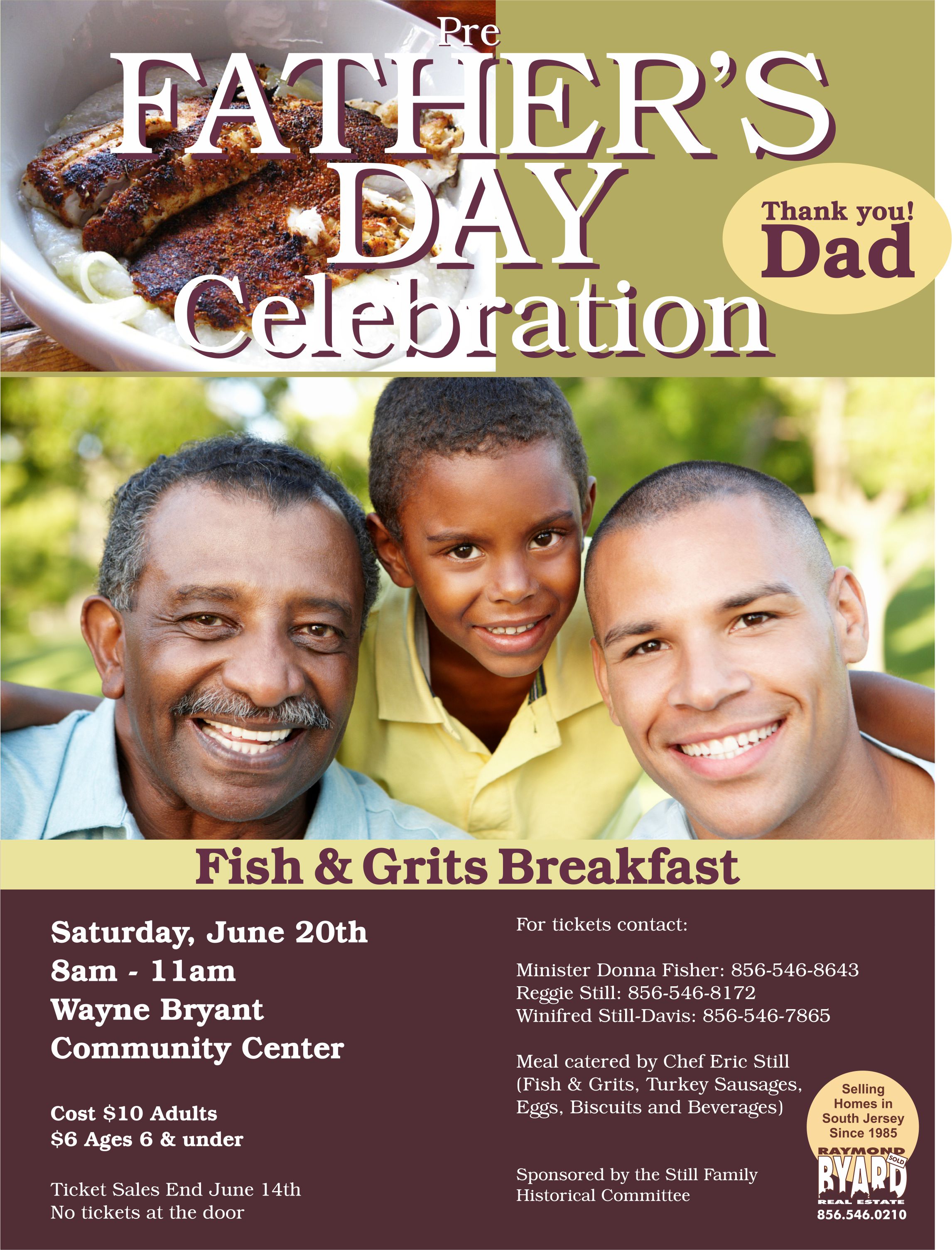 Pre Father’s Day Celebration Fish & Grits Breakfast 8am to 11am,Saturday June 20, 2015